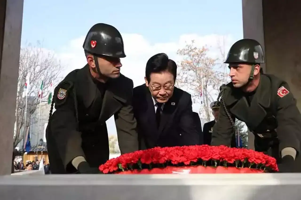 Türkiye'ye resmi ziyaret gerçekleştiren Güney Kore Cumhurbaşkanı Lee Jae Myung ile eşi Kim Hea Kyung, Ankara'da 'Kore'de Savaşan Türkler Anıtı'nı ziyaret etti.