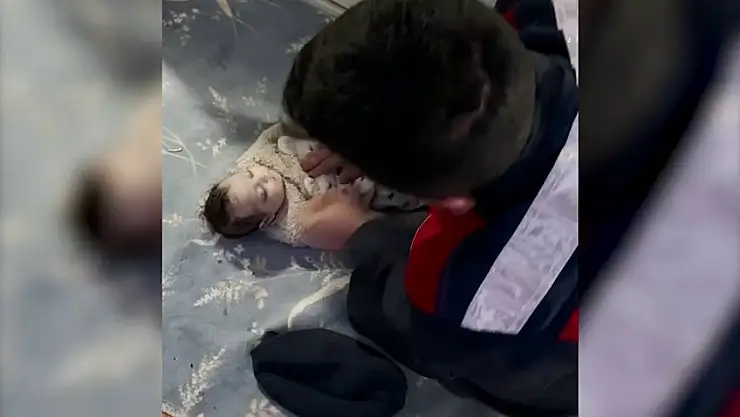 ADIYAMAN'da, hareketsiz yatan bebeği gören annenin çığlıklarına yetişen jandarma ekipleri, kalp masajı ve suni teneffüsle 4 aylık İkra'yı hayata döndürdü. O anlar cep telefonu kamerasıyla kaydedildi.