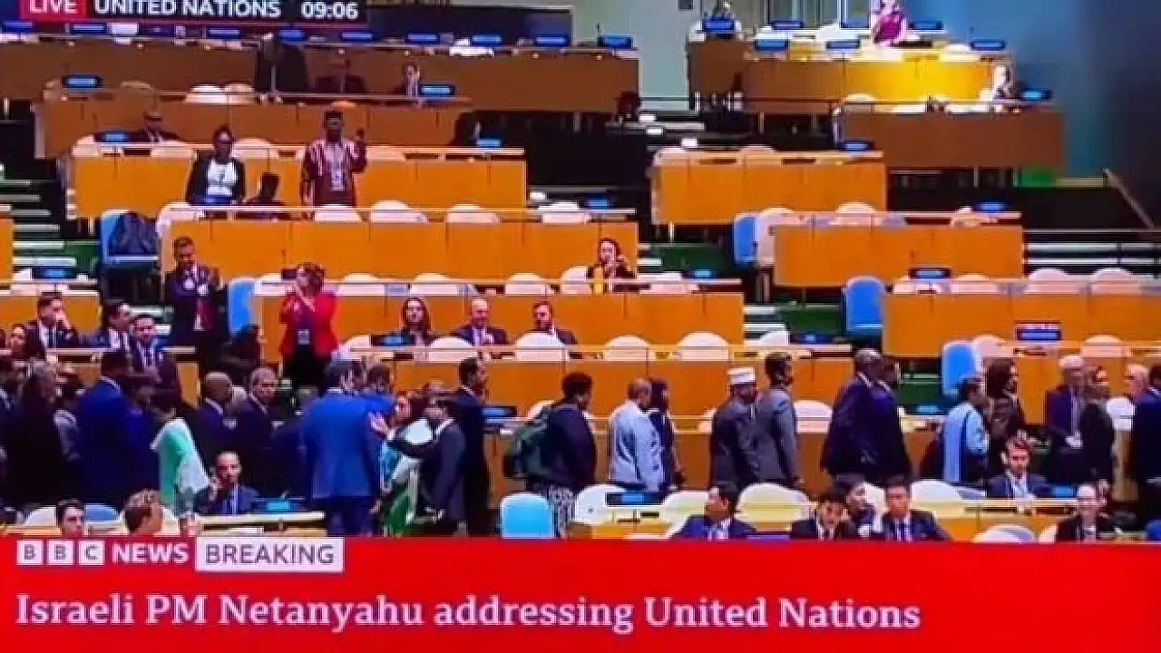 - İsrail Başbakanı Netanyahu Kürsüye Geldi Özgür Filistin Sloganlarıyla BM Salonu Boşaldı