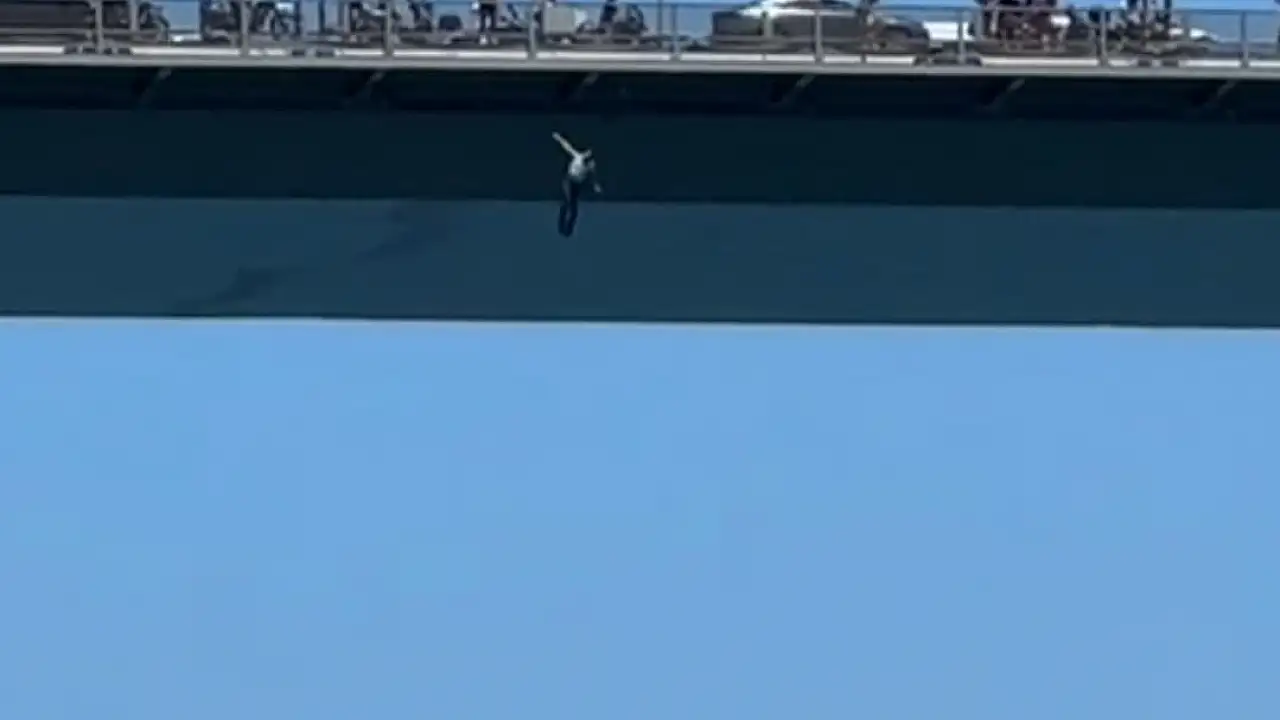 15 Temmuz Şehitler Köprüsü'nden atlayan bir kişi hayatını kaybetti. Şahsın köprüden atladığı anlar, cep telefonu kamerasına kaydedildi.