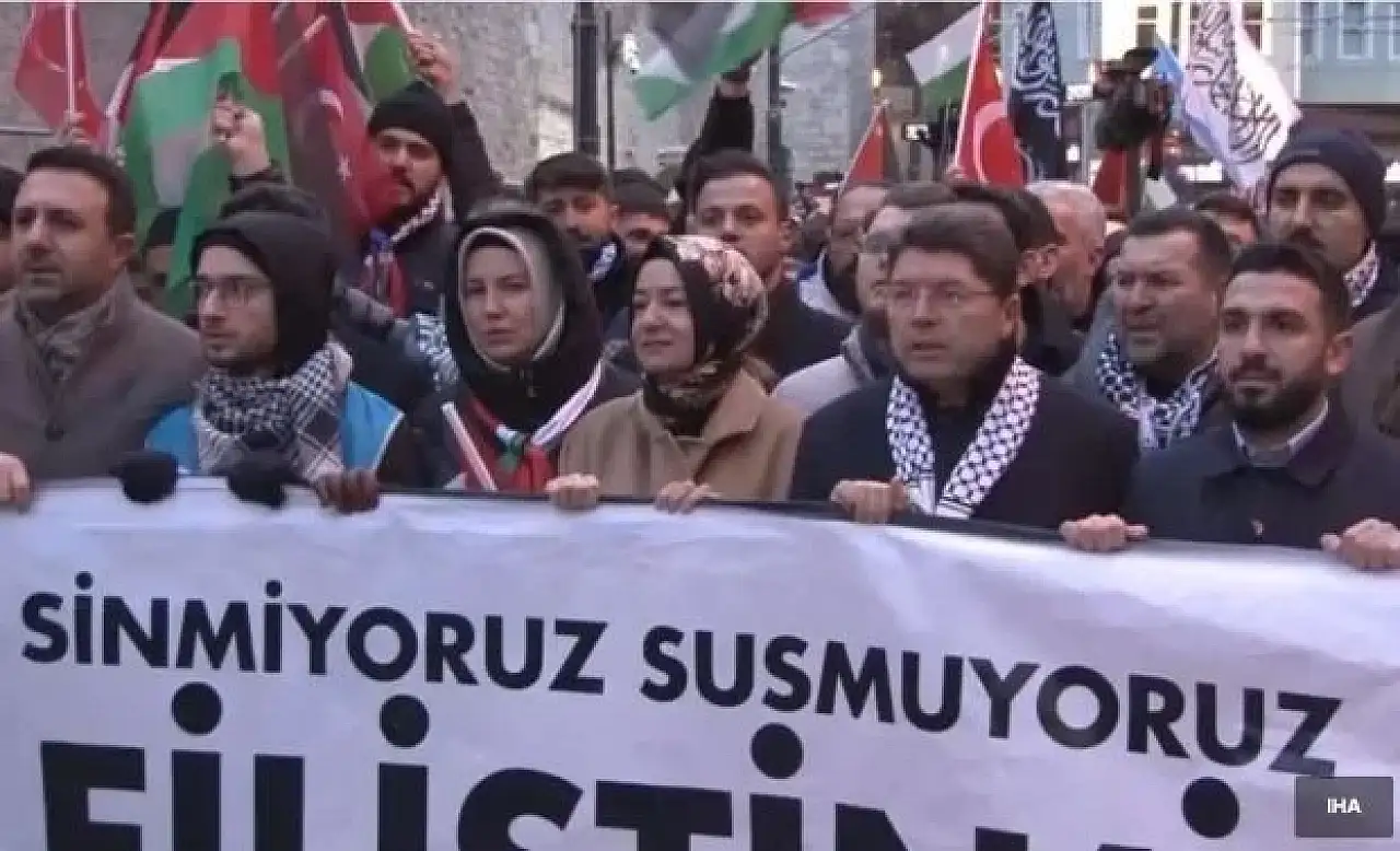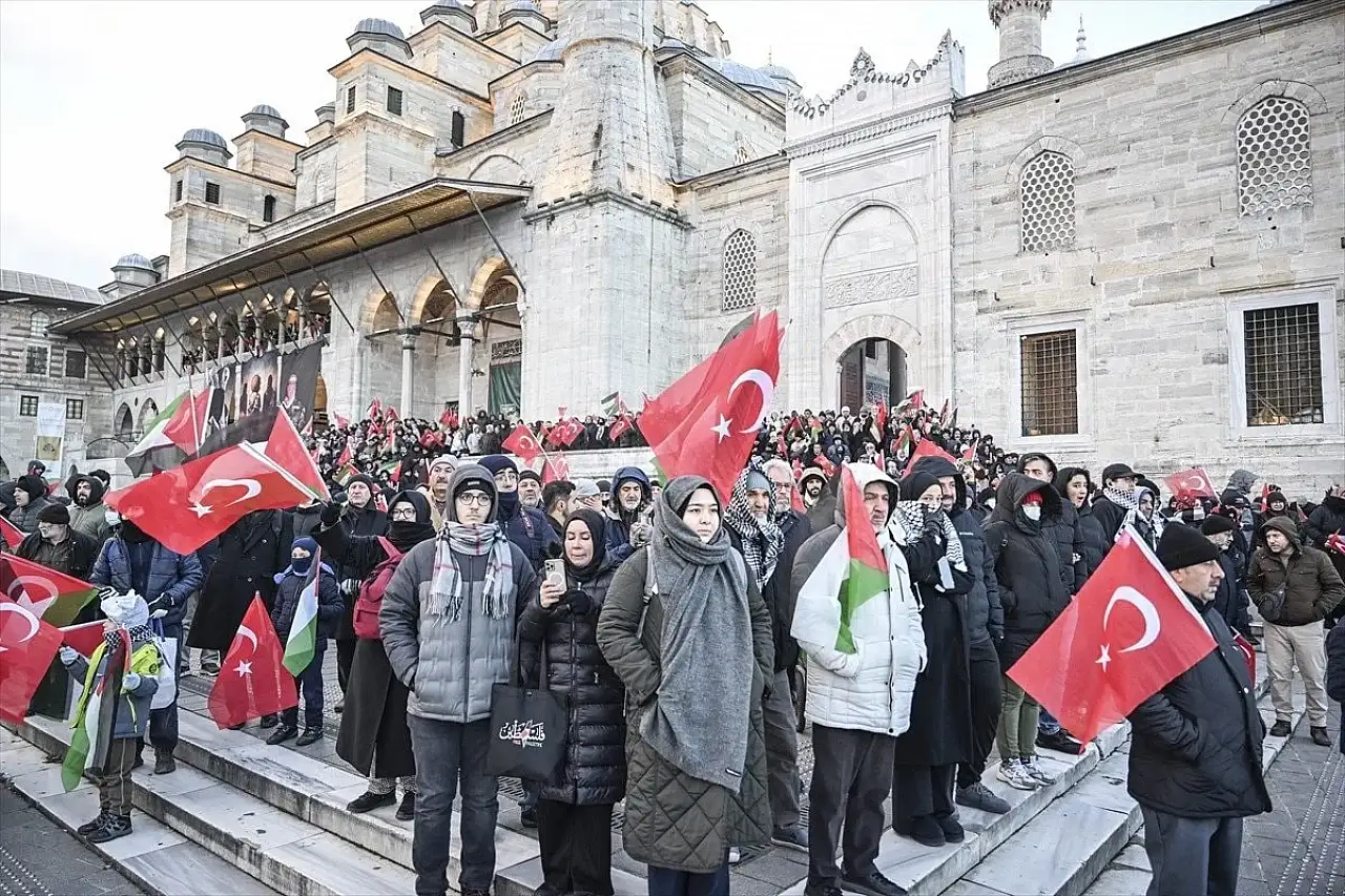 Ateşkes ilan edilmesine rağmen İsrail'in Filistin'deki saldırıları sürüyor. Yeni yılın ilk sabahında İstanbul'da on binlerce kişi 'Sinmiyoruz, susmuyoruz Filistin'i unutmuyoruz' sloganıyla bir araya geldi. Sabah namazının ardından Sultanahmet Meydanı'nda toplanan kişiler, kortejlerle Galata Köprüsü'ne doğru yürüyüşe başladı.