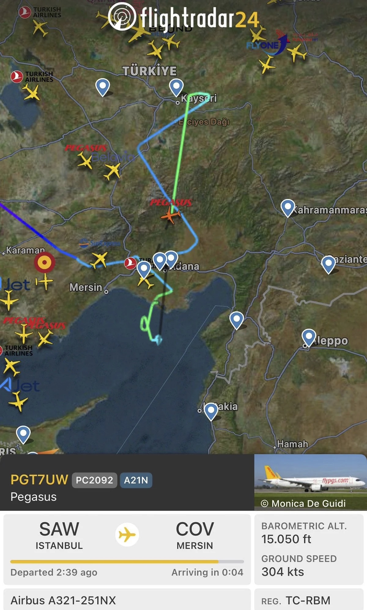 Yaklaşık 3 saat boyunca havada kalan Pegasus Hava Yolları'nın PC2092 numaralı seferini gerçekleştiren Airbus A321 marka yolcu uçağı, çok sayıda yolcunun büyük bir panik yaşamasına sebebiyet verdi.