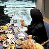 Sofrasında envai çeşit kahvaltılık ve içinde şerbet olduğu tahmin edilen kadehi ile Kabe manzarası önünden kameraya poz veren kadının paylaşımı, kısa sürede sosyal medyada yayıldı.