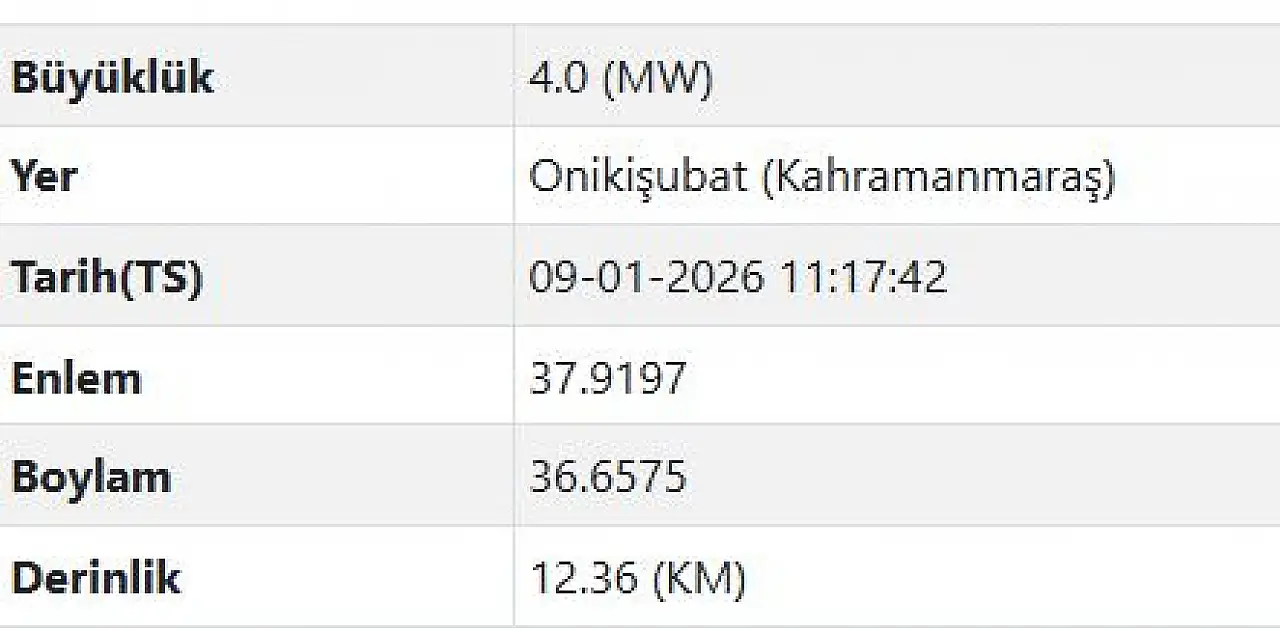 Kahramanmaraş'ın Onikişubat ilçesinde saat 11.17'de 4 büyüklüğünde deprem meydana geldi.