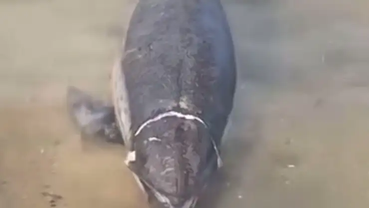 Bursa'da karaya vuran bir yunus görüntülendi. Ölü yunusu görenler zabıtaya haber verdi.
