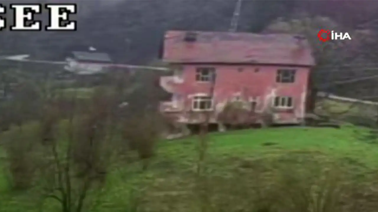 Kastamonu'nun Cide ilçesinde heyelan riski sebebiyle tahliye edilen iki katlı evin çökme anı güvenlik kamerasına yansıdı.