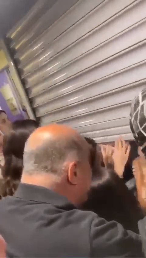 Çok sayıda vatandaşın ürün alabilmek için birbiriyle yarıştığı mağazada müşteriler arasında kavga anları mağazadaki başka bir müşteri tarafından cep telefonu kamerasıyla görüntülendi.