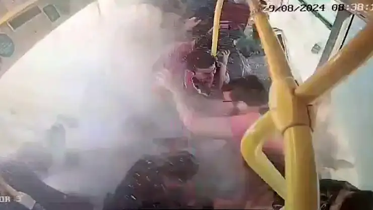 Görüntülerde ilerleyen metrobüse diğer metrobüsün çarptığı ve çarpmanın etkisiyle toz bulutunun oluşuğu ve daha sonra metrobüs içerisindeki yolcuların kazanın etkisiyle etrafa savrulduğu görülüyor.