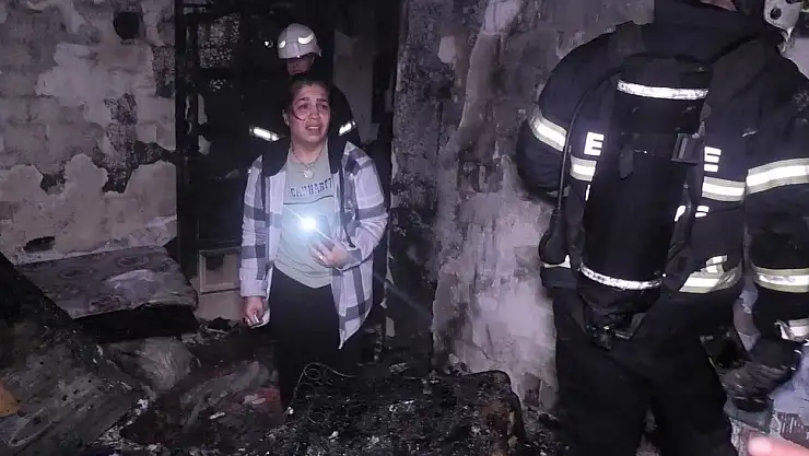 Eve geldiğinde içeriden alevler yükseldiğini gördüğünü söyleyen Göksel Kırcan da, “Camlar patladı ve ev kullanılamaz hale geldi” ifadelerine yer verdi.