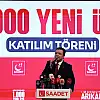 Son altı ayda 67 bin 244 yeni üye kazanarak muhalefet partileri arasında üye artışında ilk sıraya yerleşen Saadet Partisi, Kayseri'nin Kocasinan ilçesinde düzenlenen 'Bin Yeni Üye Katılım Töreni' ile büyüme ivmesini sahaya taşıdı. Törende konuşan Saadet Partisi Genel Başkan Mahmut Arıkan, ekonomi ve kalkınma başta olmak üzere gündeme ilişkin değerlendirmelerde bulunarak, 'Bahane üretenlerin değil, çözüm üretenlerin iktidarı olacağız' mesajını verdi.