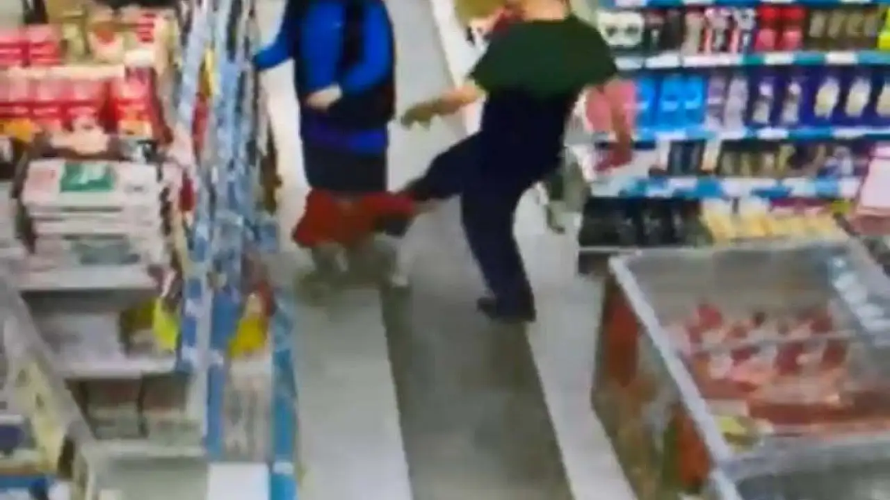 Markette çocuğunu tekmeleyen cani gözaltına alındı