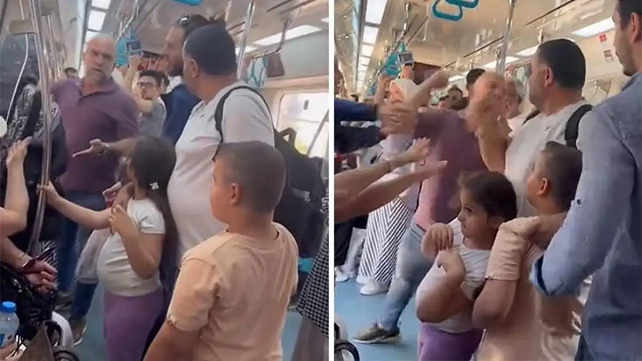 Tartışma sırasında trende bulunan E.D. (50), D.E.’yi darbetti. Kavgaya sonradan dahil olan İ.A.'nın da araya girmesiyle arbede büyüdü. Trenin durağa yanaşmasıyla inen taraflar, tartışmaya burada devam etti. Yaşanan olayda korkan çocukları ise duraktaki kadın yolcular sakinleştirmeye çalıştı. O anlar bir yolcunun cep telefonu kamerasıyla kaydedildi.