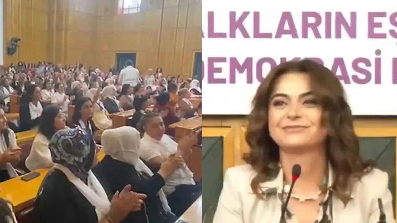 DEM Parti Grup Başkanvekili Gülistan Kılıç Koçyiğit'in Grup Toplantısı'nda, açılışı yapmasının ardından 'Biji Serok Apo' sloganları atıldı