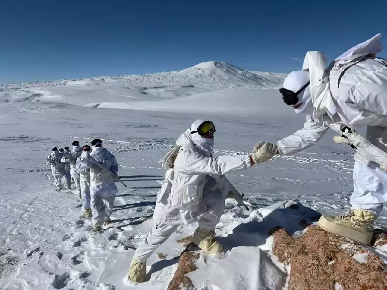 Mehmetçiğin, kış şartlarına uyumlu kamuflajları ile karla kaplı dağlık arazide devriye görevi icra ederken çekilen fotoğrafları da paylaşıldı.