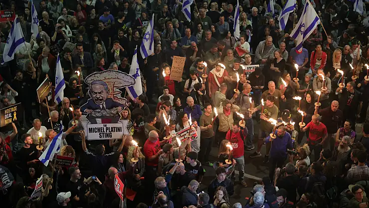 Erken seçim çağrısında bulunan kalabalık, esir anlaşmasının kabul edilmesini talep etti. İsrail bayrakları ve hükümet aleyhinde sloganların yer aldığı pankartlar taşıyan İsrailli göstericiler, Netanyahu hükümetini istifaya çağıran sloganlar attı.