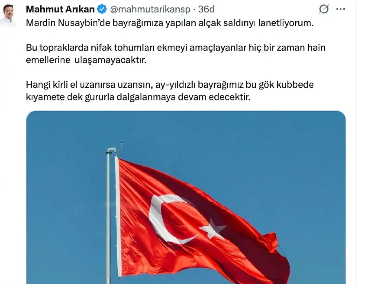 “Mardin Nusaybin’de bayrağımıza yapılan alçak saldırıyı lanetliyorum.