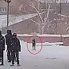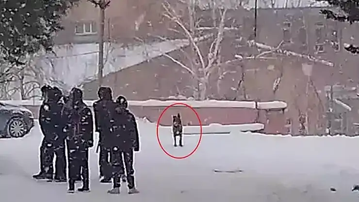 Okul bahçesine giren kurt köpeği öğrencilere saldırdı