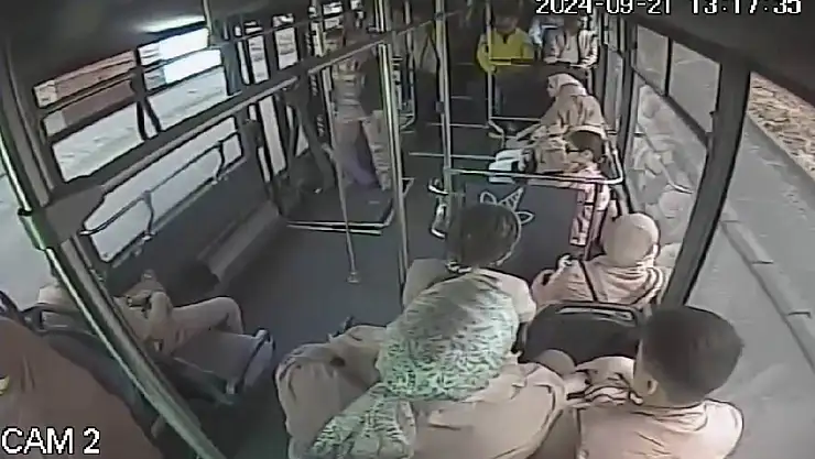 O anlar ise özel halk otobüsünün güvenlik kameralarına yansıdı.