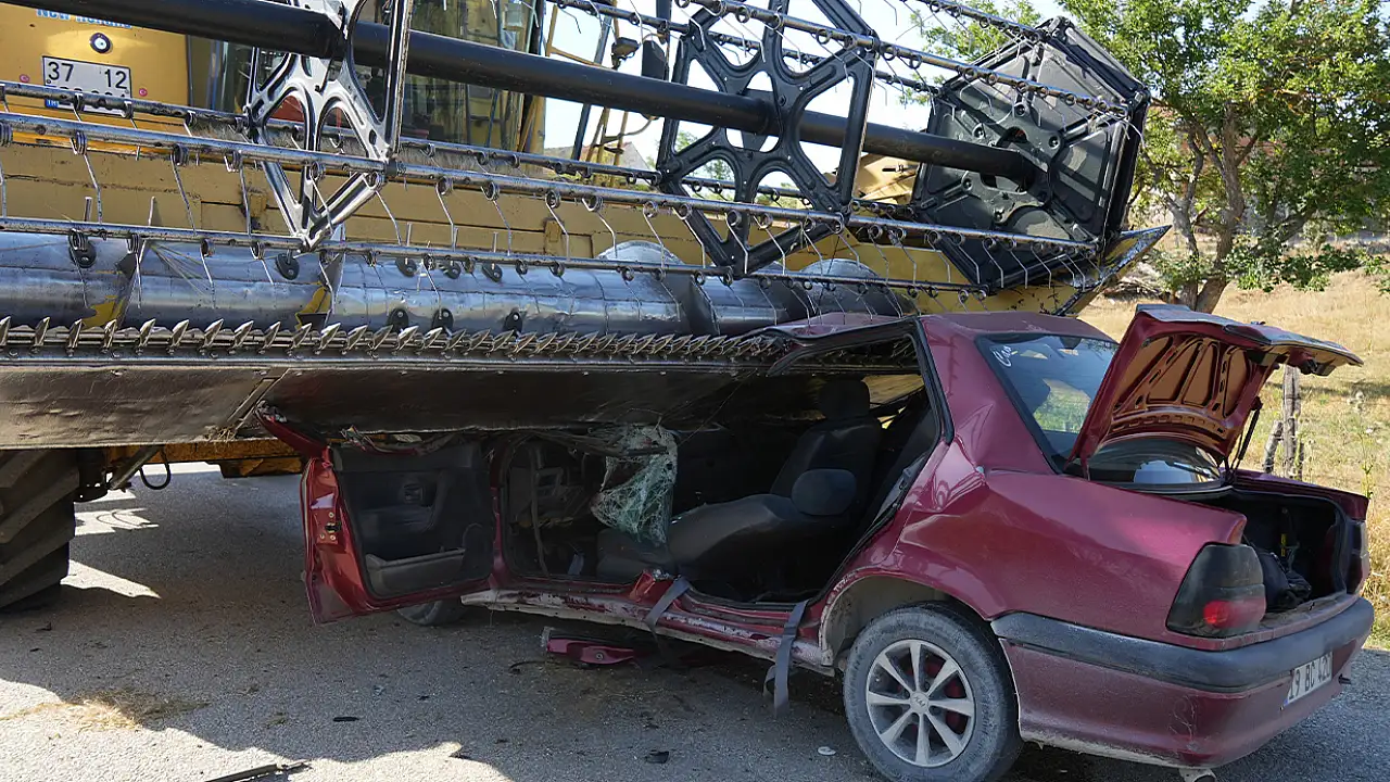 Kastamonu'da otomobil, karşı yönden gelen biçerdöverin altında kalarak ezildi. Kazada araç sürücüsü hayatını kaybetti.