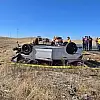 Otomobil, sürücüsünün kontrolünden çıkıp takla attı.