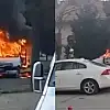 Beylikdüzü'de park halindeki hafif ticari araçta çıkan yangın söndürüldü. Demir yığınına dönen aracın alev alev yandığı anlar cep telefonu kamerasıyla kaydedildi.