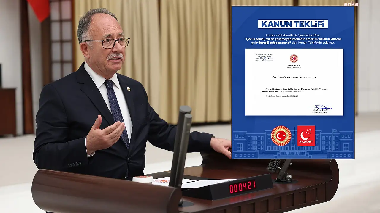 Saadet Partisi Antalya Milletvekili Şerafettin Kılıç, çocuk sahibi, evli ve çalışmayan kadınlara sosyal güvenlik ve gelir desteği sağlanmasını için TBMM Başkanlığı'na kanun teklifi verdi.