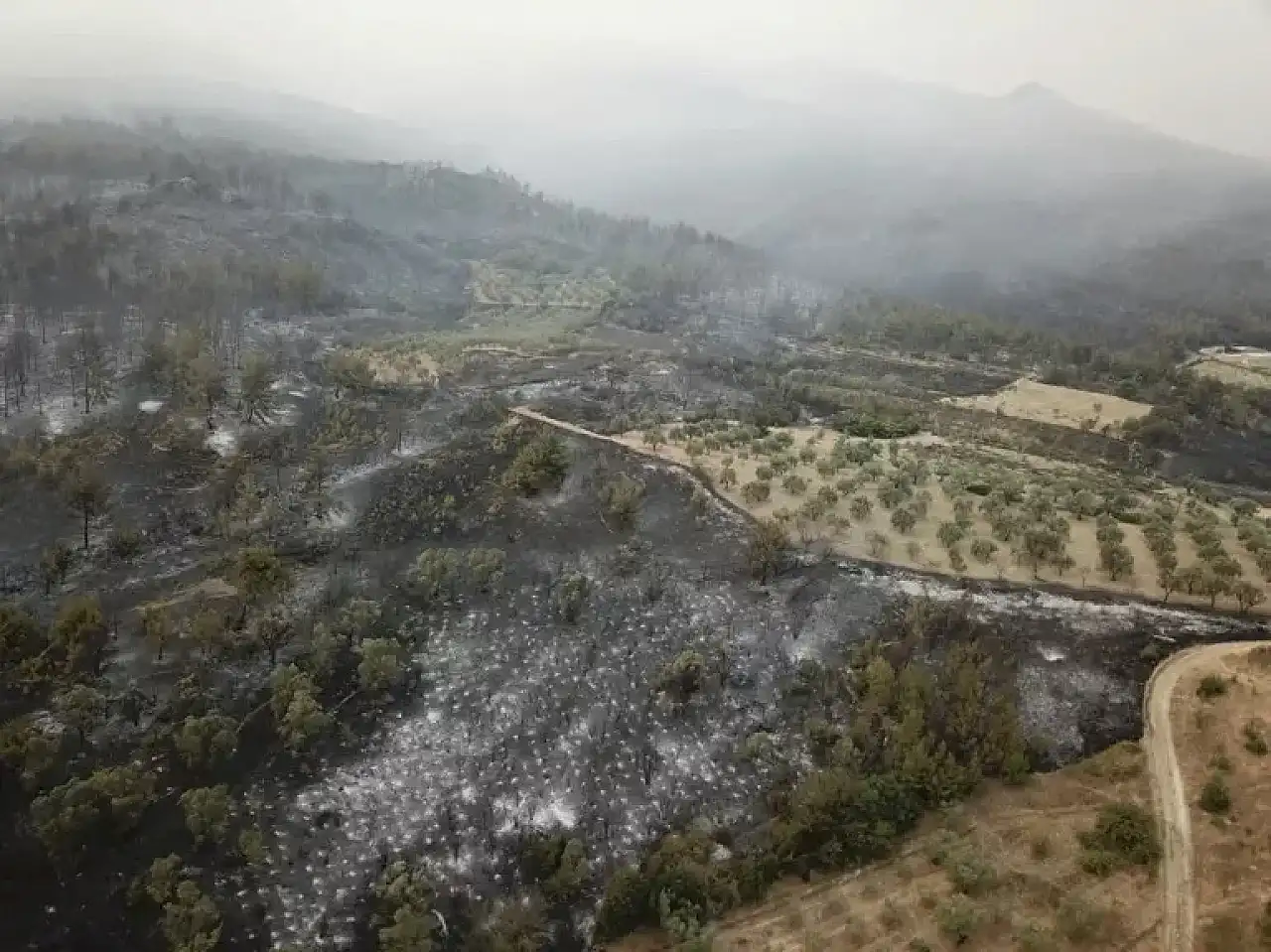 YANAN ALANLAR HAVADAN GÖRÜNTÜLENDİ