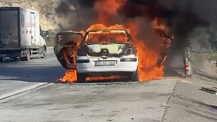 Seyir halindeki otomobil alev topuna döndü