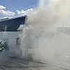 Seyir halindeki yolcu otobüsü yandı yolcular tahliye edildi