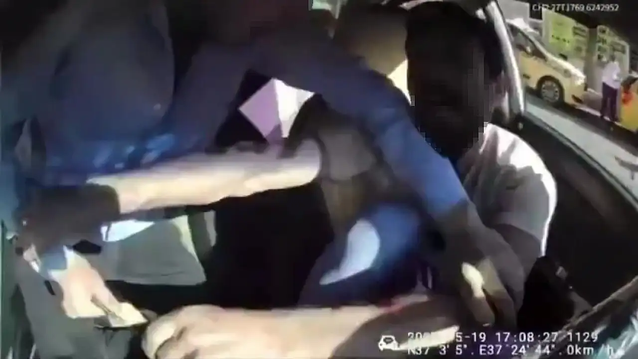 Görüntülerde taksicinin kendisini güçlükle aracından dışarı attığı ve saldırganın kaçtığı görüldü. Polis, kaçan saldırganı yakalamak için çalışma başlattı.