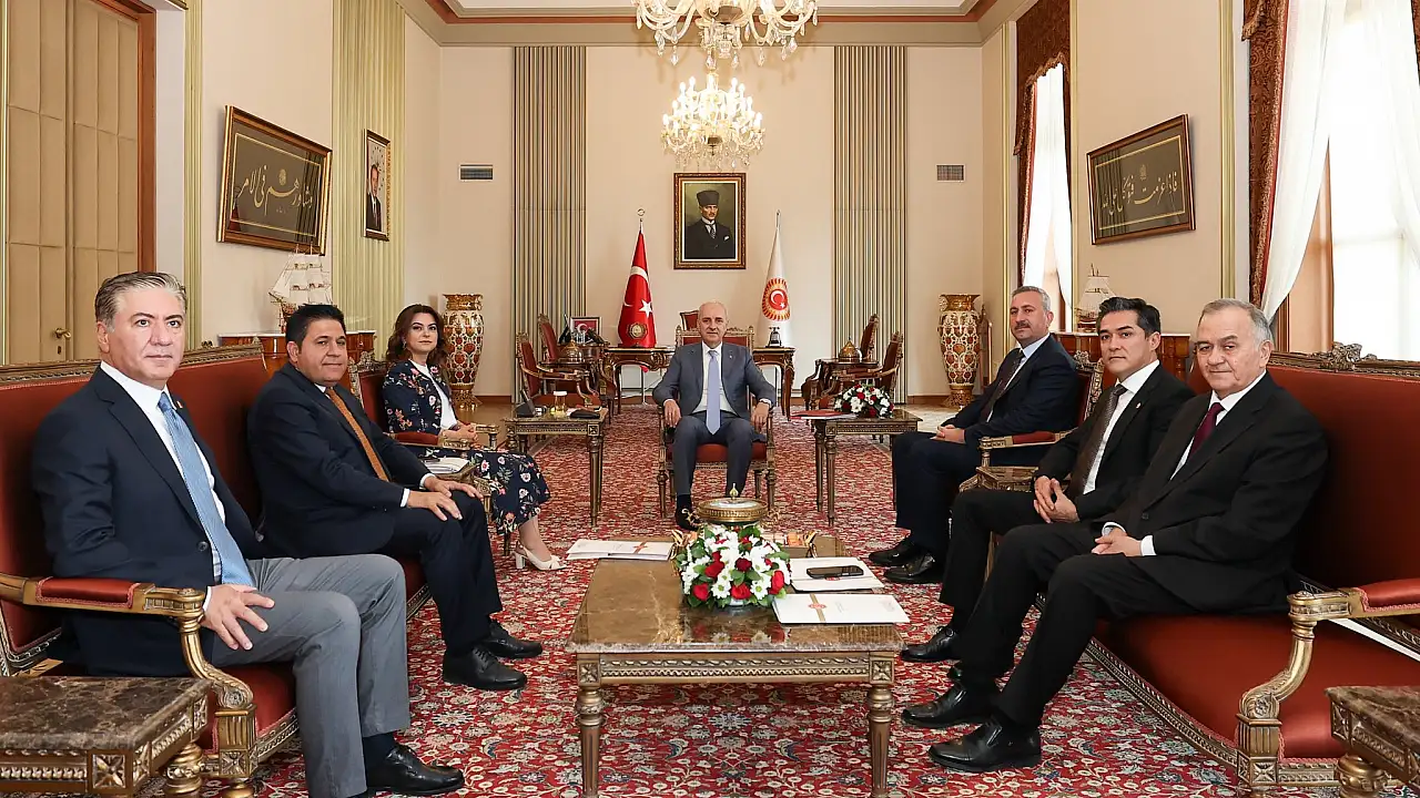 TBMM Başkanı Numan Kurtulmuş, Meclis'te kurulması beklenen komisyonun görüşmeleri için AK Parti Grup Başkanvekili Abdulhamit Gül, CHP Grup Başkanvekili Murat Emir, DEM Parti Grup Başkanvekili Gülüstan Kılıç Koçyiğit, MHP Grup Başkanvekili Erkan Akçay, İYİ Parti Grup Başkanvekili Buğra Kavuncu ve Yeni Yol Partisi Grup Başkanı Bülent Kaya'yı kabul etti.