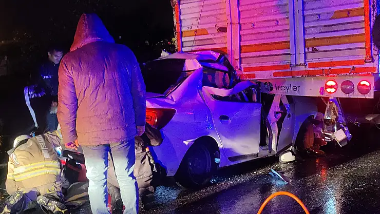 TIR'a Arkadan Çarpan Otomobil Kağıt Gibi Ezildi: 1 Ölü, 2 Yaralı