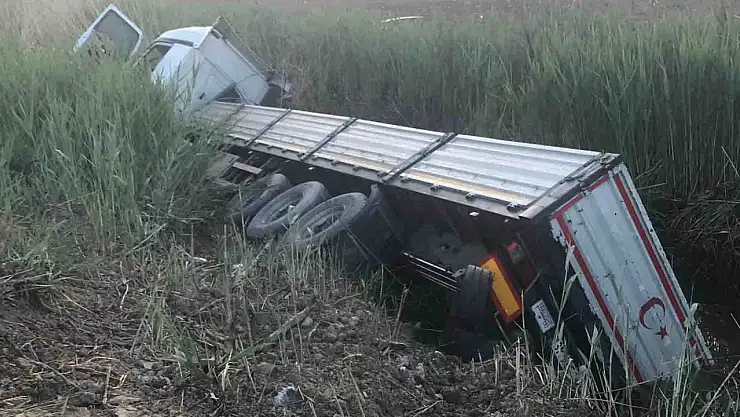 Konya'nın Ereğli ilçesinde TIR'ın şarampole devrildiği kazada şoför Emre Tekin hayatını kaybetti, yanındaki Yunus Emre Vural yaralandı.