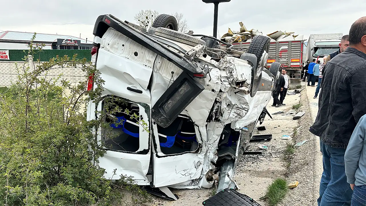 Tırla çarpışan minibüs takla attı: 10 yaralı