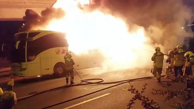 Tünelde Panik Figüranları Taşıyan Otobüs Alev Alev Yandı