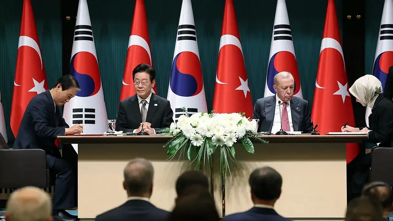 Cumhurbaşkanı Erdoğan ile Güney Kore Cumhurbaşkanı Lee Jae-myung, Cumhurbaşkanlığı Külliyesi'nde düzenlenen ortak basın toplantısında konuştu. Toplantıda ayrıca iki ülke arasında biri nükleer santral olmak üzere çeşitli alanlarda 6 anlaşmaya imza atıldı.