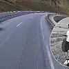 Görüntülere, virajda motosikletin bariyerlere çarparak yola savrulduğu anlar görüldü.