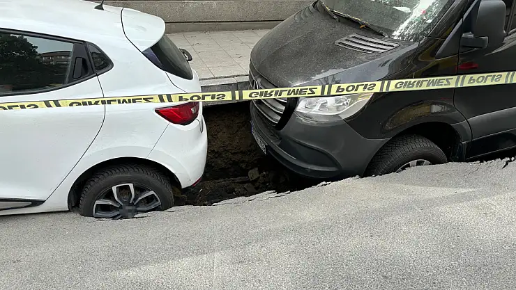 Şişli'de bir yolda meydana gelen çökme sonucu oluşan çukura 2 araç düştü.