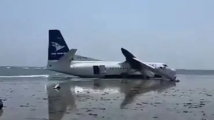 Somali'nin başkenti Mogadişu'da 55 kişiyle havalanan yolcu uçağı, kısa süre teknik arıza nedeniyle geri döndü. İnişte pistten çıkan uçağın kanatlarından birinin koptuğu, can kaybı olmadığı belirtildi.